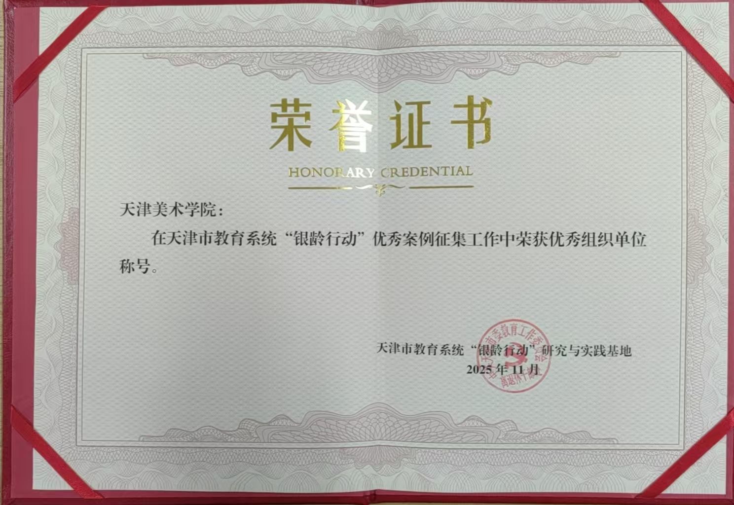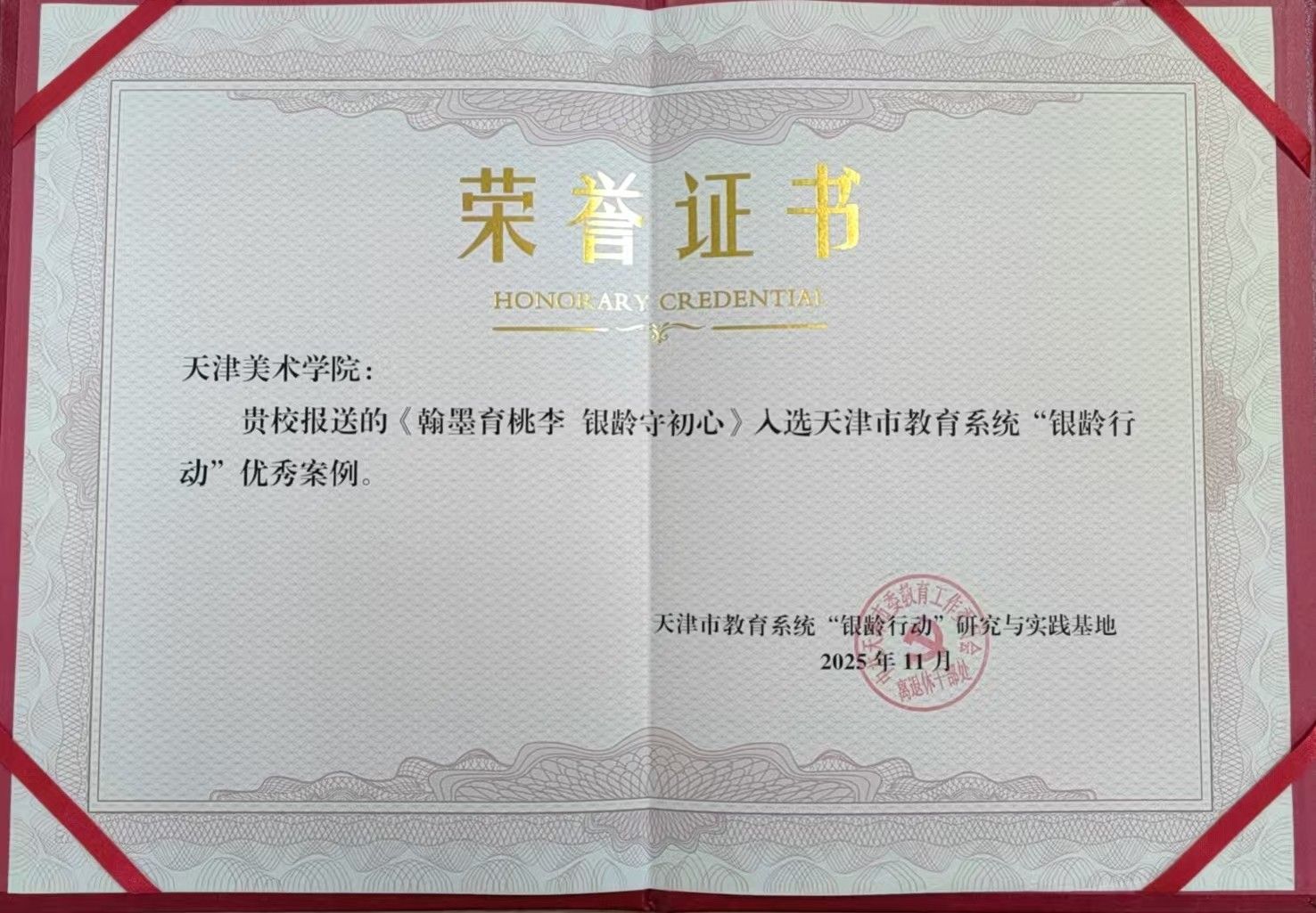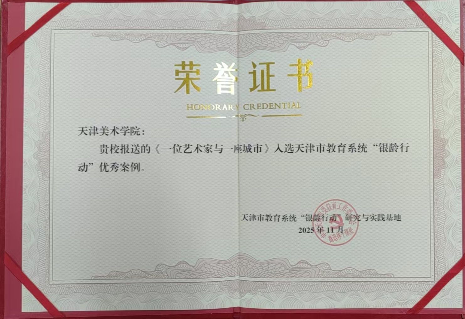 近日,天津市教育系统 "银龄行动" 优秀案例评选结果揭晓,我校凭借突出表现荣获 "优秀组织单位" 称号,报送的《翰墨育桃李 银龄守初心》《一位艺术家与一座城市》两案例双双入选优秀案例,彰显了我校离退休教授老有所为、薪火相传的责任担当。